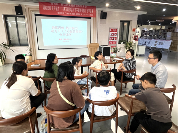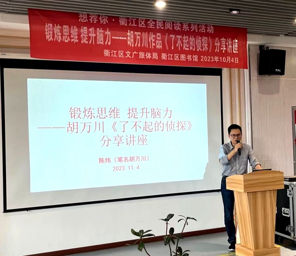 11月4日下午,衢江區圖書館特邀請兒童文學作家陳煒(筆名:胡萬川),開展“想薦你·鍛煉思維 提升腦力——胡萬川作品《了不起的偵探》”作家分享講座。