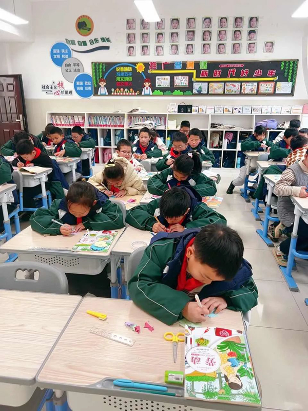 走進虎山小學,13位大橋小學的小朋友由結對小伙伴熱情迎接,一起走進了各個班級,開始了為期兩天的學習之旅。面對新的環境、新的課堂、新的老師和新的同學,大橋小學的孩子們并沒有感到陌生和拘謹,而是迅速融入了新的集體。他們在課堂上專注聽講,積極發言,展現出大方自信的風采。