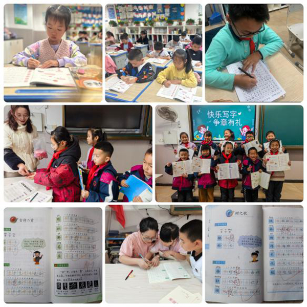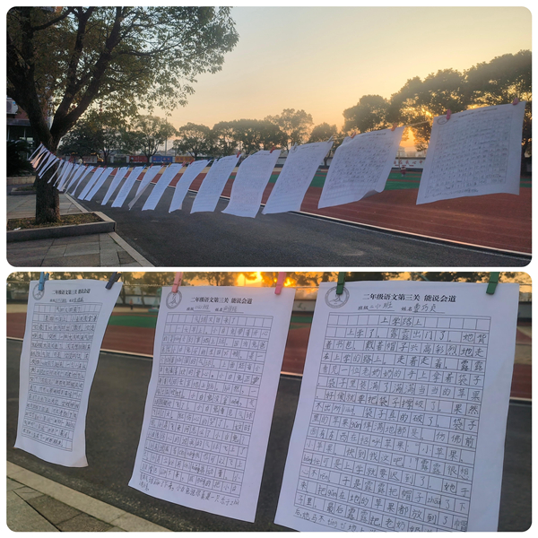 三是活動推進,以賽激趣。“玩轉拼音”“識字魔方”“快樂寫字”“閱讀存折”“讀書筆記”“日記接力”“佳作大賞”……多樣活動猶如升級打怪,學生樂在其中,語文素養無痕有成。每學期一次的漢字書寫大賽和現場作文比賽,就像“階段成果大閱兵”,亮賽比,展風采。我們把優秀作品通過多種形式展出:貼上椅背、掛在樹間、展板、校外宣傳窗……給足孩子榮譽感。