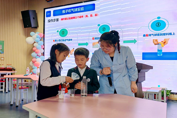 學校邀請了浙江大學工程師學院衢州分院、浙江大學衢州研究院和華友鈷業的科普講師團來校分年級專場開展科普實驗展示活動。漂浮的水果、土耳其熱氣球、檸檬電池、大象牙膏……實驗內容深受學生喜愛?;顒蝇F場,科普團的老師們向學生們展示了生動有趣的實驗過程,現場表演“魔術”,引得學生陣陣歡呼,紛紛舉手來親身體驗科學的魅力,現場氣氛熱烈而活躍。