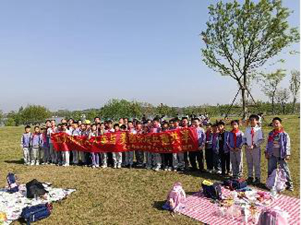 迎著和煦的春風,沐著溫暖的陽光,我們四年級的同學們與“星際樂園”赴一場春天的約會。遼遠的晴空,碧綠的草地,眨眼的野花,歡樂的孩童……構筑一幅春天迷人的畫卷。欣賞大自然的美,留下文明的足跡。我們用實際行動踐行“五水共治,從我做起”新時代少年的責任與擔當。