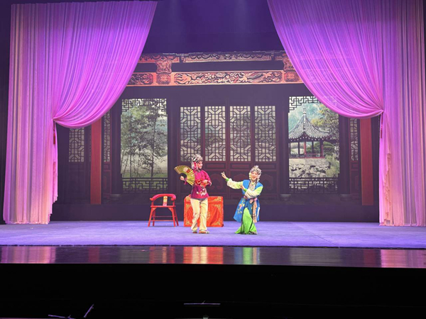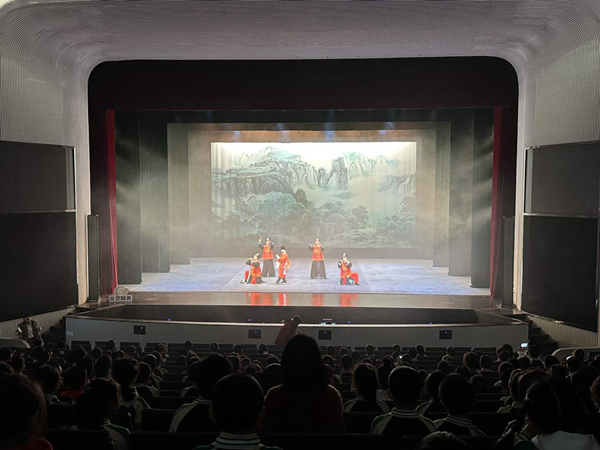 折子戲《過河》一開場就吸引了學生們的目光。極具人物身份特色的扮相、轉折起伏的劇情、連貫酣暢的動作戲將這個縣令過河的詼諧故事演繹得淋漓盡致。隨后,《掛畫》《活捉三郎》《提牢》等折子戲輪番上演,學生們看得專注,不時隨著情節的變動發出驚呼,有的學生還悄悄學著演員拗起身段、吊起嗓子,有模有樣地小聲跟唱幾句,分外入迷。