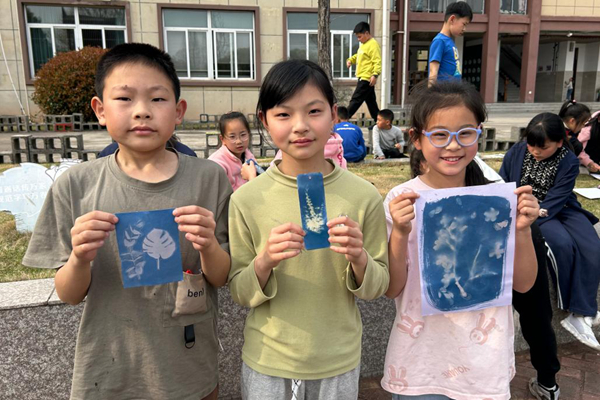 傳統的手工印相工藝在萬田小學孩子們的手中煥著新的生機。在藍曬的整個活動過程中,同學們通過親身體驗,了解了傳統與當下不同的物體成像方式,也知道了它們自己的獨特之處。