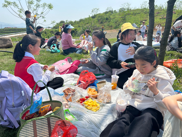 到達春游地點后,學生們迫不及待地開始了各種游戲和活動。有的班級組織了拔河比賽,大家齊心協力,為了班級的榮譽而拼搏;有的班級則開展了環?;顒?,撿拾垃圾,宣傳環保理念;還有的班級則圍坐在一起,分享美食,暢談理想。