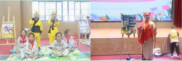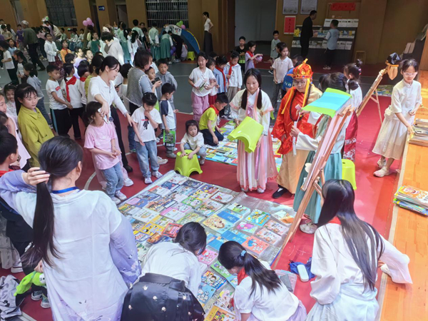 校園里,到處彌漫著書香。孩子們以班級為單位,搭起了各具特色的“小小書店”。他們分工協作,各司其職,有的負責推銷,有的負責賣圖書,有的收錢記賬……為了吸引“買家”,各個小書店的銷售策略真是“八仙過海,各顯神通”。有的高舉廣告牌到處攬客,有的拿著書本流動銷售,有的設置各類游戲增加買書體驗,有的裝扮人物招攬顧客……同學們使出渾身解數推銷自己的圖書。