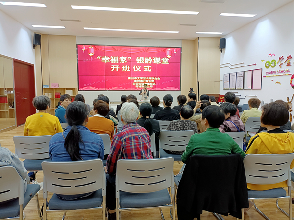 4月19日上午,“幸福家“銀齡課堂”正式開班,吸引了五十余名滿懷熱情與期待的老年人。他們齊聚一堂,臉上洋溢著幸福的笑容,共同開啟了一段充實而愉快的學習之旅。