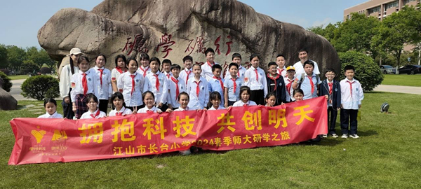 微風不燥,陽光正好。4月15日,江山市長臺小學組織四至六年級同學走進浙江師范大學,開展以“擁抱科技,共創明天”為主題的研學實踐活動。