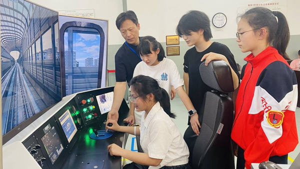 研學第二站:浙師大實驗室。在學長學姐們的引領下,同學們在軌道交通省級協同創新中心、智能制造產教融合基地深度體驗了軌道交通系統的運行、智能制造系統和機器人場地賽。