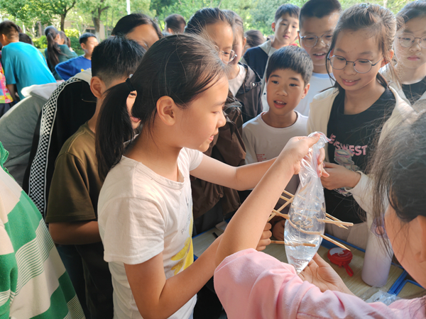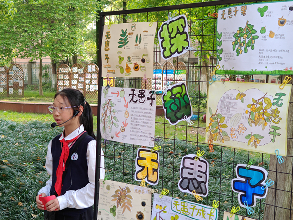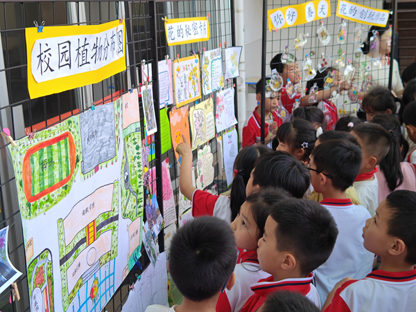 4月17日,為了給學生提供一個自我展現的平臺,學校特此舉行了科普閱讀項目化學習成果展。12個展區,內容、形式精彩紛呈,不僅有“科學家人生經歷手賬”,“趣味科學知識備忘卡”,“‘我問你答’知識手卡”,“手繪地圖”,“葉脈書簽”等閱讀作品,還有苔蘚微景觀,無患子手串、香皂、洗手液等實物,以及現場演示科學小實驗……同學們在老師的帶領下,輪流觀展,互看互學。通過聆聽講解員的講解、閱讀書籍作品、動手參與體驗,同學們對神奇的科學世界產生了更大的興趣,對閱讀科普類書籍的熱情也更加高漲。