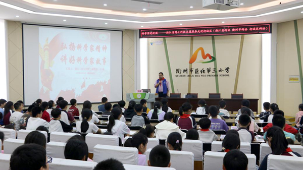“各位同學,你們到學校來做什么?將來長大后想做什么樣的人?”4月24日下午,衢州市巨化第三小學的多功能廳內,一場精彩的“科學家精神”宣講活動正在進行。來自浙江工業大學的科學家精神宣講人、副教授王涌引用竺可楨先生的話,向孩子們拋出問題后,引發大家的熱議。