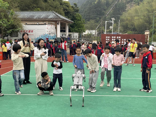 來到教學樓前的操場上,只見工作人員打開后車廂,熟練地清點、搬運器材。隨著10余個科普展品被擺上桌子,學生們立刻圍了上來。他們或駐足觀看,或動手操作,歡笑聲、驚嘆聲此起彼伏。放眼操場,機器狗最受大家的歡迎,只見學生們圍成一圈,目不轉睛地盯著機器狗跳躍、打滾、翻身?!拔矣X得這場活動非常有意思,能幫助我更直觀地理解科學課上的內容?!痹撔A昙墝W生毛梓諾說。