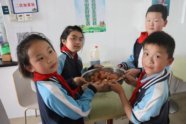 孩子們紛紛拿出自己的壓歲錢,親自挑選最新鮮的雞蛋。在“愛心廚房”里暖流涌動,只見孩子們用自己的小手,小心翼翼地清洗著每個雞蛋,并把洗干凈的雞蛋慢慢放入大鍋中煮熟,最后按照勞動課所學的知識,分步驟加入適量的調料,不一會兒,整個廚房香氣撲鼻。