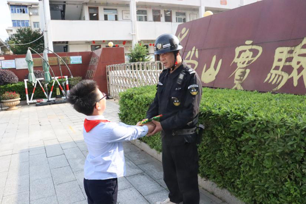 “保安叔叔,您辛苦了!祝您勞動節快樂!”占睿宸同學將滿滿的心意獻給了每日維護校園安全的保安叔叔??粗迨灏⒁虃冮_心的笑臉,孩子們也格外開心,一場用勞動向勞動者的致敬給他們帶來了不小的收獲?!斑@次活動讓我感受到了勞動所帶來的成就感,也讓我體味到了這些一線勞動者的辛苦,我們應該將勤勞樸實的美德發揚下去,同時做到遵守紀律,愛護校園,減輕叔叔阿姨們的工作負擔?!闭碱e吠瑢W說。
