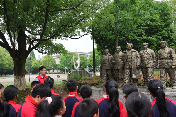 進入十里坪黨建公園,濃厚的紅色教育環境氛圍撲面而來?!澳銈冎谰畬皆谀睦飭??”“長征的故事,令人動容,你有熟悉的發生在長征期間的故事嗎?”……傅警官一連拋出幾個問題,和同學們親切互動,激發學生學習興趣,和諧愉快的紅色之旅便在傅警官生動地講述中拉開帷幕。