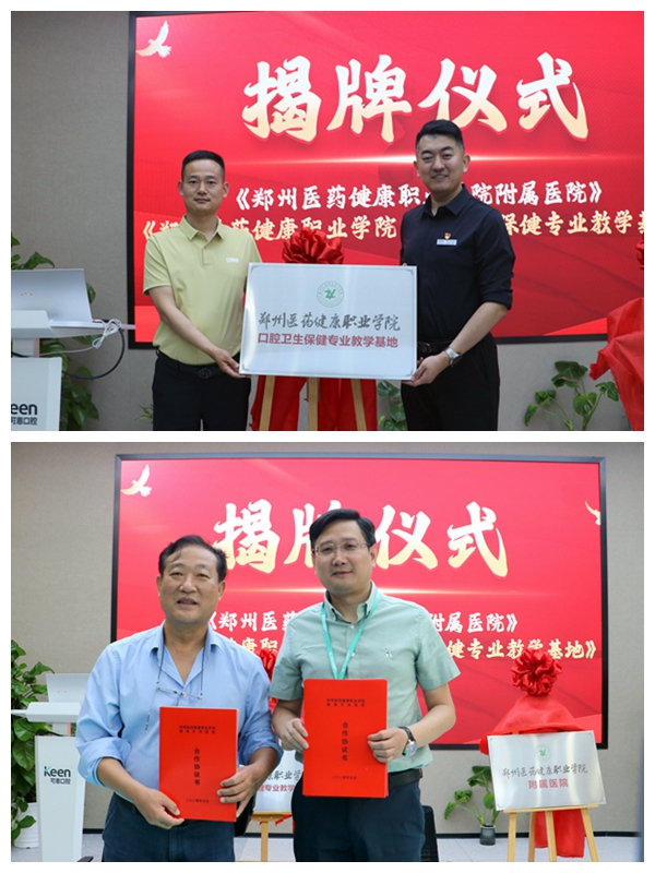 儀式上,還揭牌了“鄭州醫藥健康職業學院口腔衛生保健專業的教學基地”牌匾,并舉行合作簽約儀式。據悉,本次簽約完成后,衢州可恩口腔將作為鄭州醫藥健康職業學院口腔衛生保健專業的教學基地,未來將陸續接收來自該??谇恍l生保健專業的學生來衢學習實踐、簽約就業。