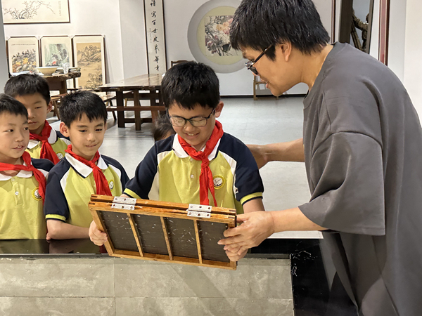 同學們在徐老師的帶領下,不僅學習到了宣紙制作的基本知識,更深刻地感受到了這項傳統技藝的精湛和獨特。他們紛紛表示,這次學習經歷讓他們對宣紙這一傳統文化瑰寶有了更深刻的認識和理解,也更加堅定了他們傳承和弘揚傳統文化的決心。