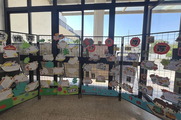 活動中,老師和同學們集思廣益齊動手,積極認真巧布置,打造出賞心悅目的圖書角。瞧!各類圖書整齊劃一地排列在干凈的書柜上,小巧精致的“圖書角標識”“圖書借閱制度”和“推薦書名”等標語,讓閱讀更有秩序。生機勃勃的小綠植錯落有致點綴其中,每一間教室,都讓人感受到濃濃的書香氣息。