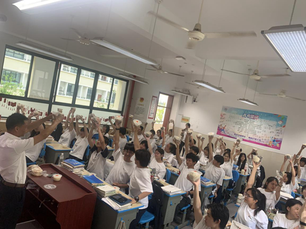 “左手是糕,右手是粽。高舉糕粽,我們‘高中’?!闭憬♂橹堇砉W校高三(1)學生吳曉蝶收到一份特殊的祝福很是開心,滿臉笑容地說,“之前看到學哥學姐收到這樣的祝福,心生羨慕之情,轉眼就輪到自己了,學校很用心、很暖心,我們很有信心?!?/p>