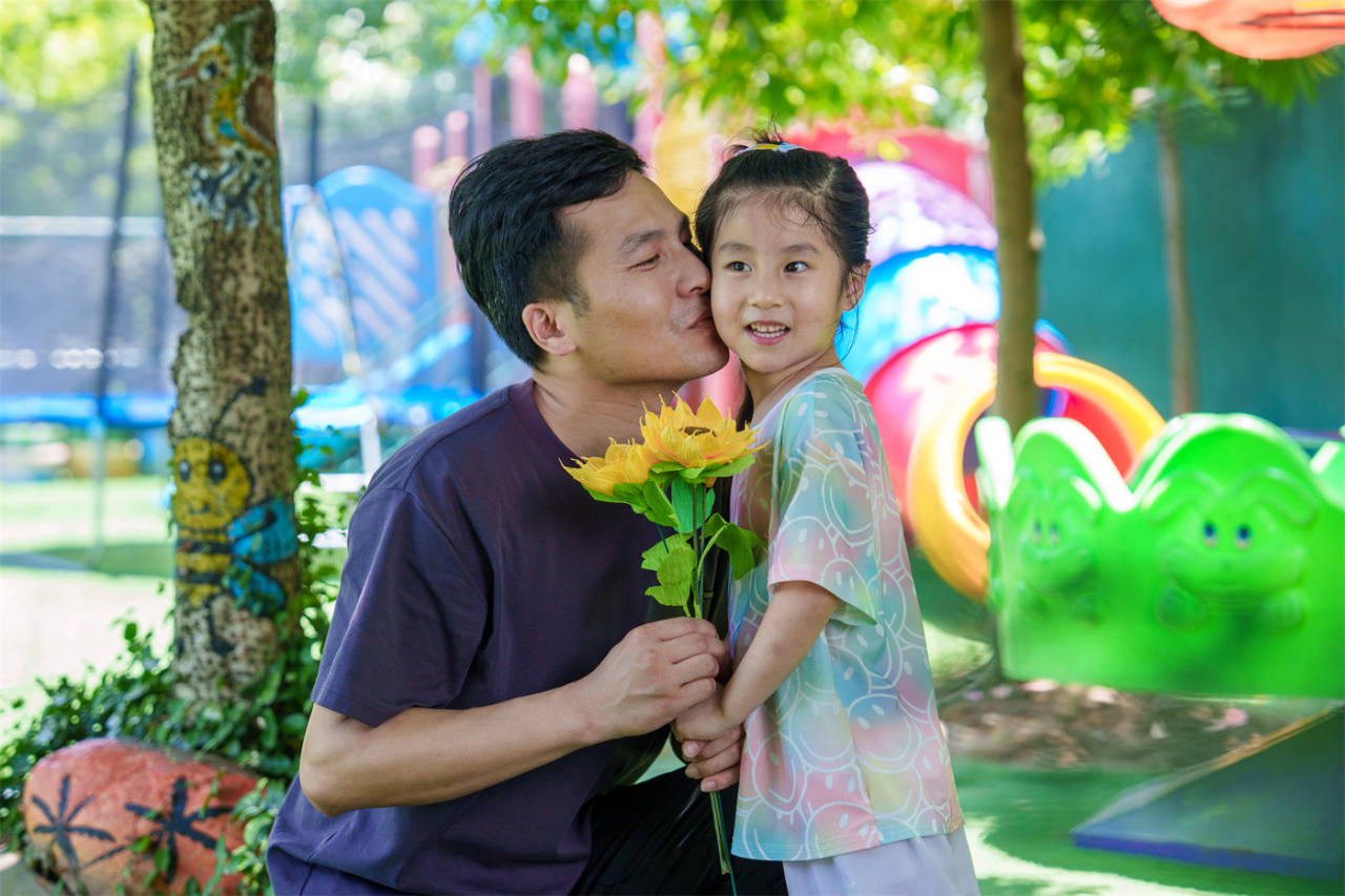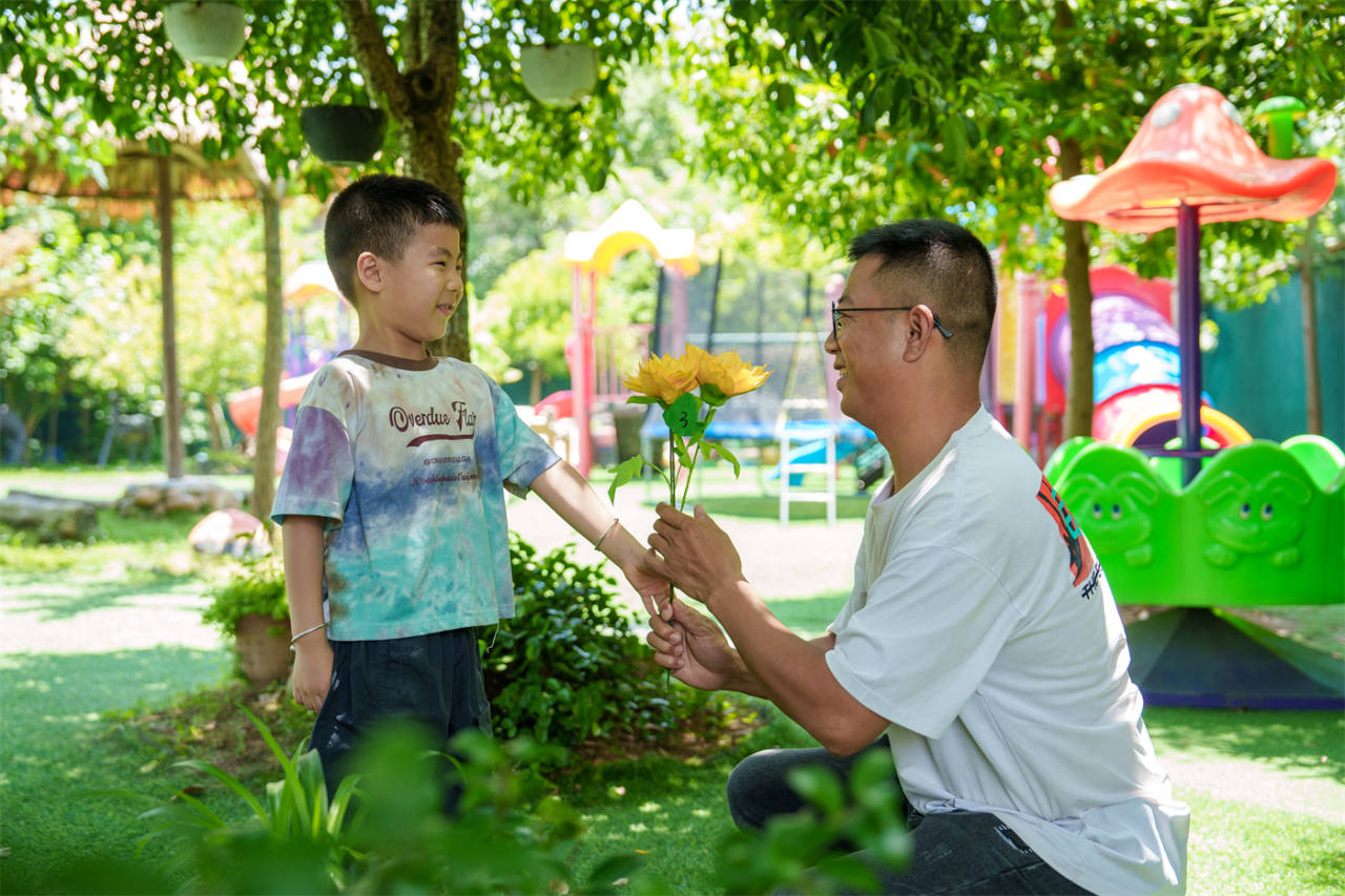 放學時,孩子們將自己親手做好的向日葵獻給爸爸,提前祝爸爸:“父親節快樂!”(三衢客戶端供稿,作者:劉蕓)
