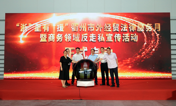 6月25日下午,在“浙”里有“援”——衢州市外經貿法律服務月暨商務領域反走私宣傳活動上,浙江省商務廳、衢州市商務局、市市場監督管理局等相關部門負責人,在當地100家重點外貿企業代表的見證下,按下啟動球,共同啟動2024年商務領域反走私宣傳活動。