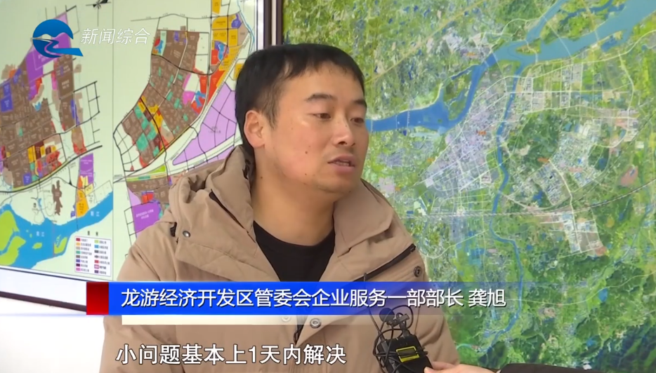 龍游經濟開發區管委會企業服務一部部長龔旭表示:有1個人跟進這個項目,針對企業提出的問題,小問題基本上1天內解決。比如說有些困難的問題,我們帶回來以后,各個部室進行研究,爭取1個禮拜之內企業這些問題都能夠進行解決。