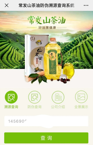 一直以來,浙江省常山縣充分挖掘油茶資源優勢和潛力,積極推動油茶產業跨越式發展。近年來,常山多家油茶企業通過“一瓶一碼”防偽溯源查詢系統,實現山茶油安全全程可追溯,為消費者守護“舌尖上的食用油安全”。