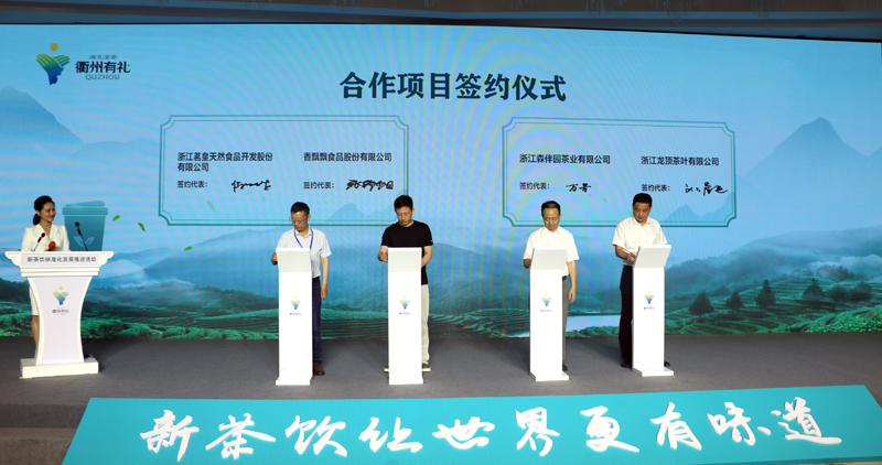 7月25日-26日,“生態錢江源 健康新茶飲”新茶飲標準化發展推進活動在浙江衢州舉行?;顒悠陂g,浙江茗皇等多家本土茶企與香飄飄等國內知名新茶飲品牌企業進行簽約,標志著衢州“打造百億茶產業”目標再添新碩果。